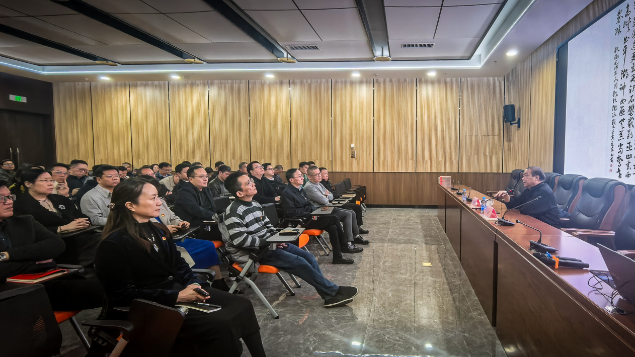為強(qiáng)化對(duì)黨員干部的教育管理,進(jìn)一步引導(dǎo)黨員干部樹(shù)牢初心使命意識(shí)、筑牢理想信仰根基、激發(fā)干事創(chuàng)業(yè)熱情。2025年11月21日下午,集團(tuán)公司特邀原解放軍藝術(shù)學(xué)院副院長(zhǎng)、教授朱向前同志主講《中國(guó)革命勝利的選擇——毛澤東與遵義會(huì)議》專題黨課。集團(tuán)公司在家班子成員、中層管理人員及各黨支部支委成員共約120余人參加學(xué)習(xí)。